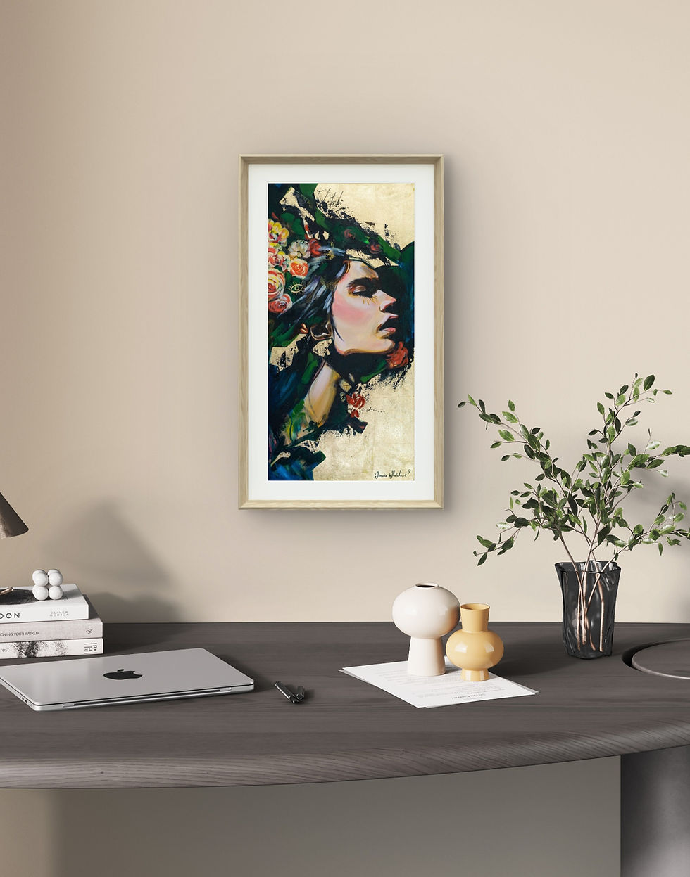 I love her special vibe, that she is the opposite of dark art. Her pictures depict the spiritual awakening of women, are very filigree and always radiate elegance and grandeur. There's something healing about her paintings, believe it or not.